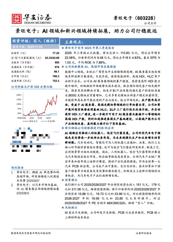 景旺电子2025年终了营收153.08亿元,同比增长20.92%,归母净利润12.31亿元,同比增长5.30%。公司聚焦“1+1+N”业务布局,汽车电子业务巩固环球龙头上风,通讯与数据基础步履业务受益于AI算力需求,开启领域化增长。珠海金湾基地加大高端产能插足,部分产线已投产;泰国坐蓐基地完成主体封顶,预测2026年内投产。