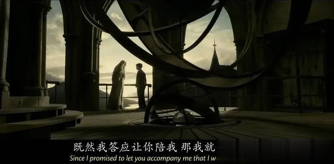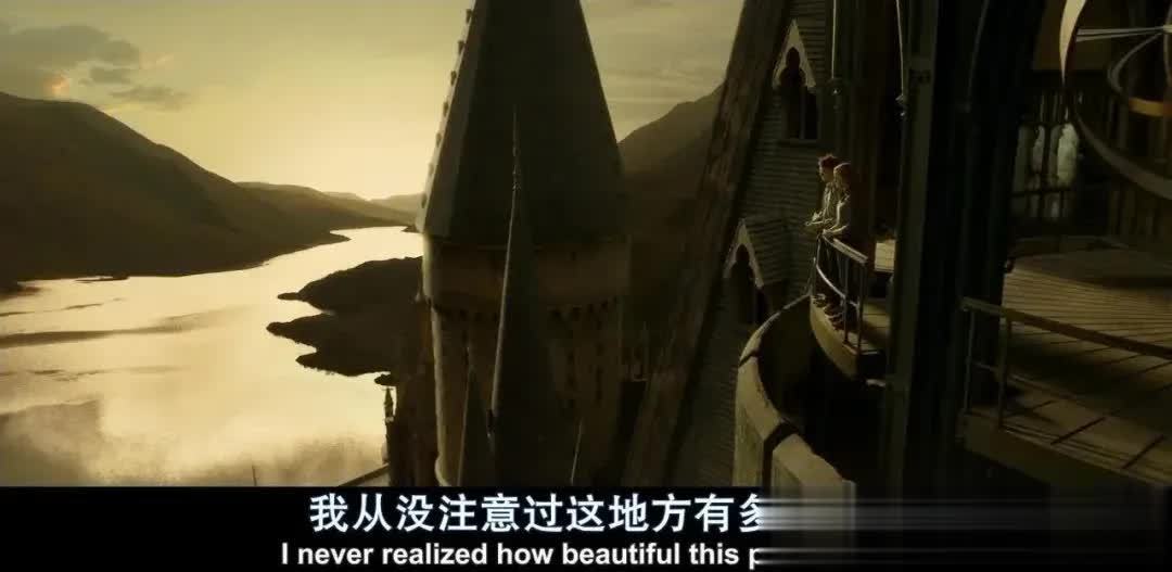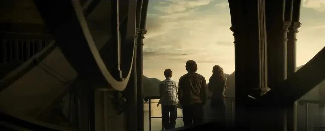 哈利与赫敏站在天文台的阳台上,一边评论着怎么完成邓布利多未尽的征程,一边远看着天边的晚霞。