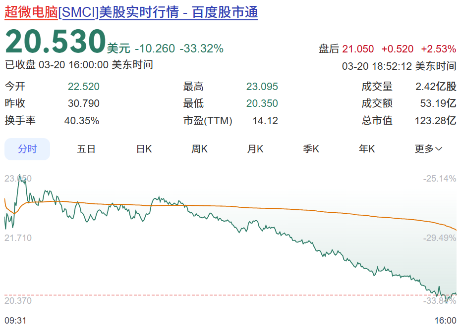受此音问影响,超微电脑股票大跌!